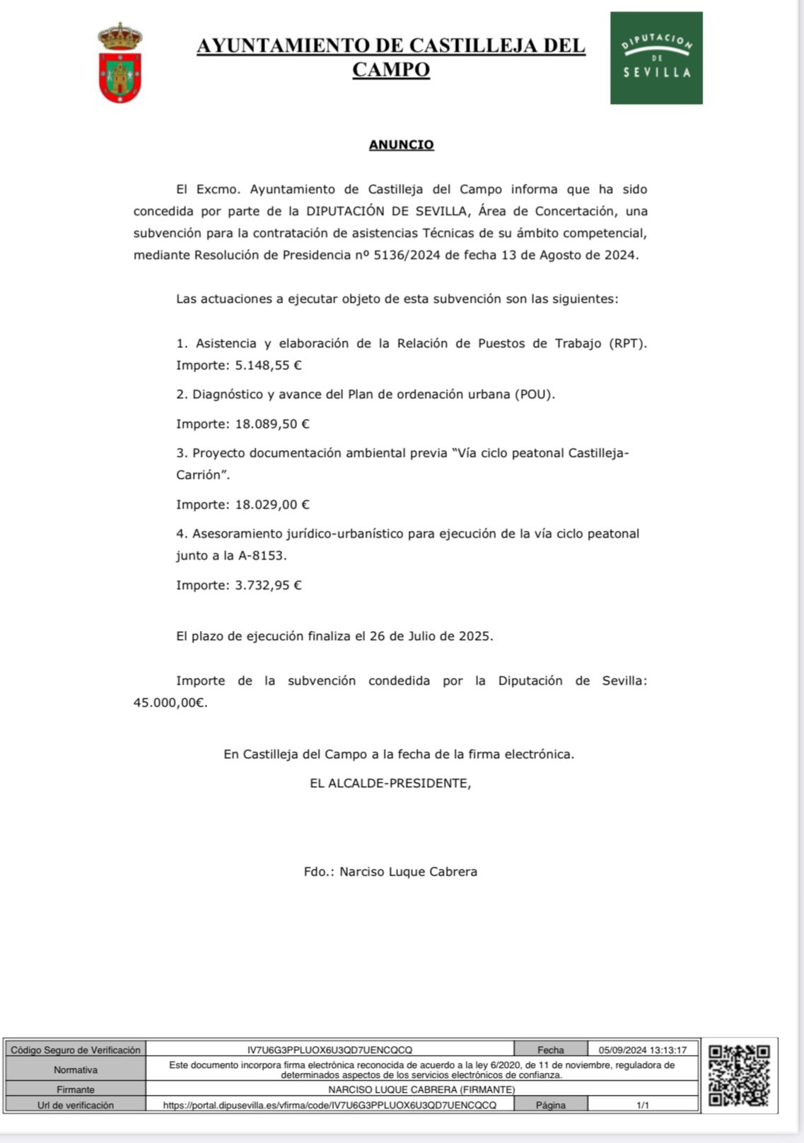 El Excmo. Ayuntamiento de Castilleja del Campo informa que ha sido